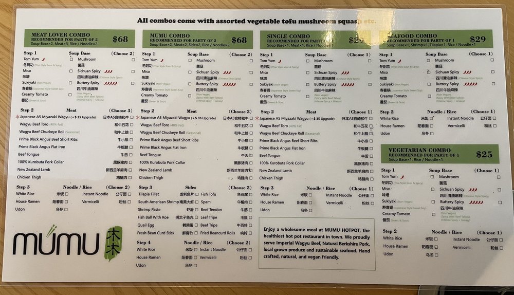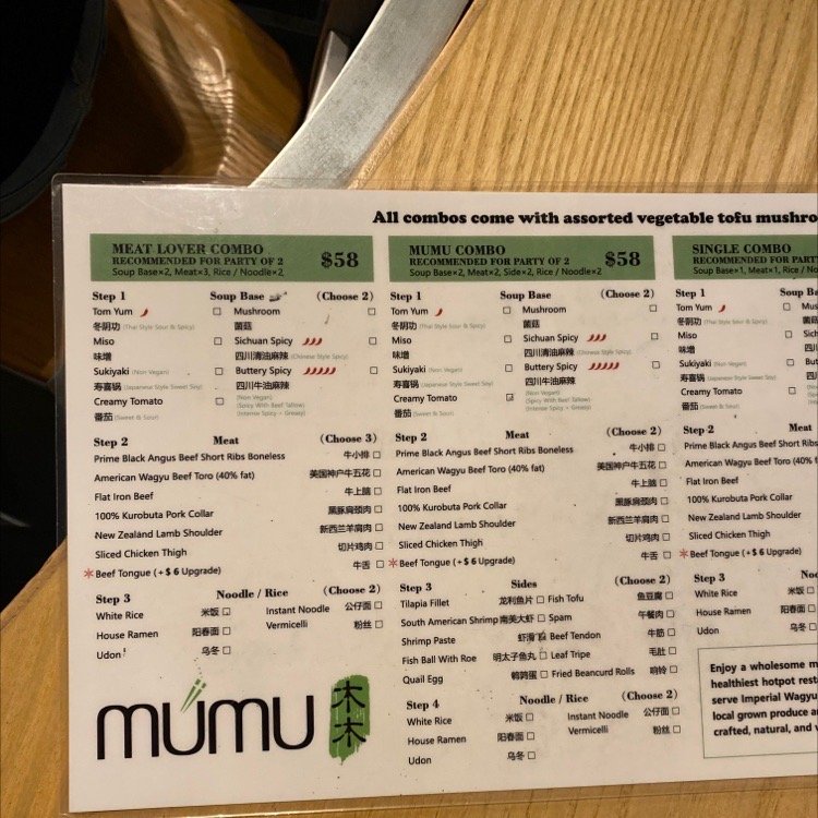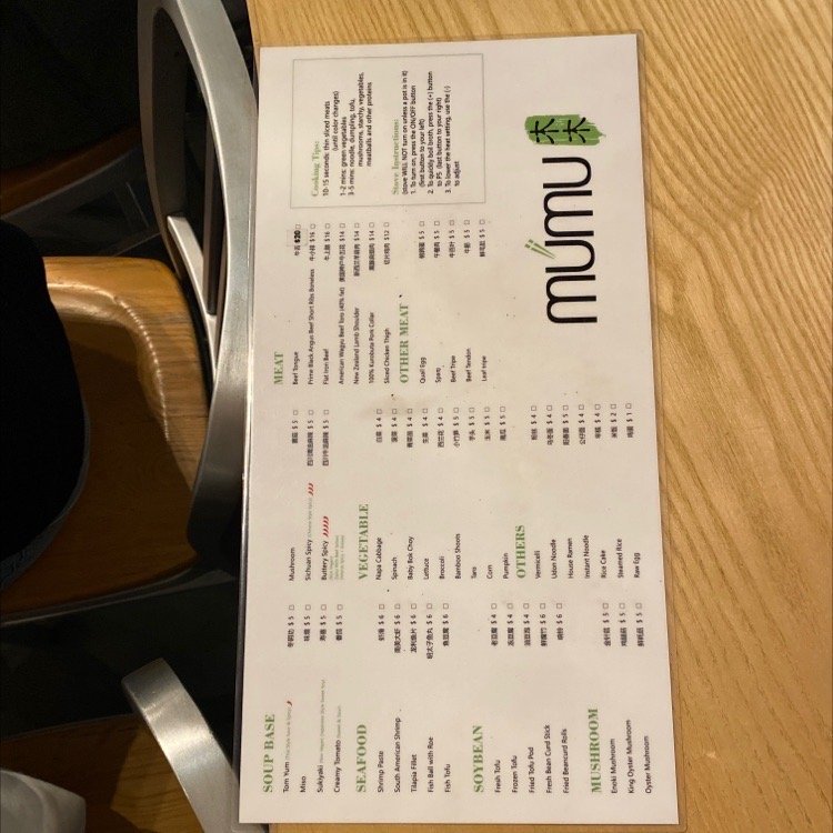 Mumu Hot Pot Menu